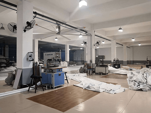 PVC篷布燙接專(zhuān)用高周波塑膠熔接機(jī) | PVC篷布專(zhuān)用自動(dòng)拼接機(jī) | 車(chē)間一角 |