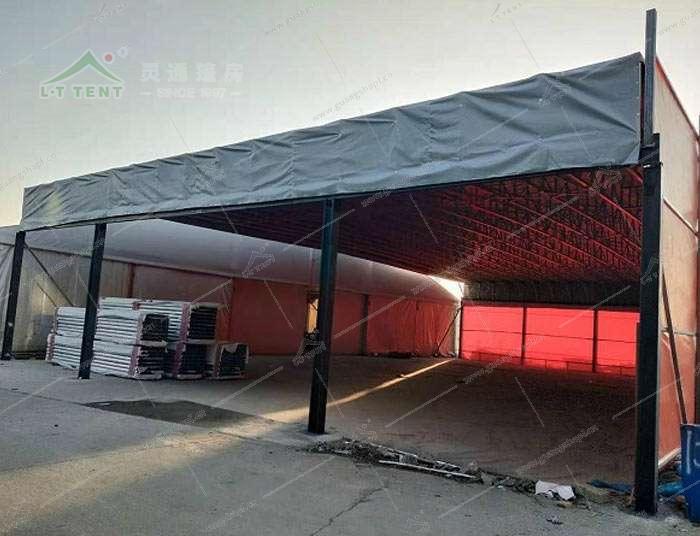 電動(dòng)推拉篷可用于工廠臨時(shí)倉(cāng)庫(kù),大型活動(dòng)場(chǎng)所,大排檔,室外遮陽(yáng)。
